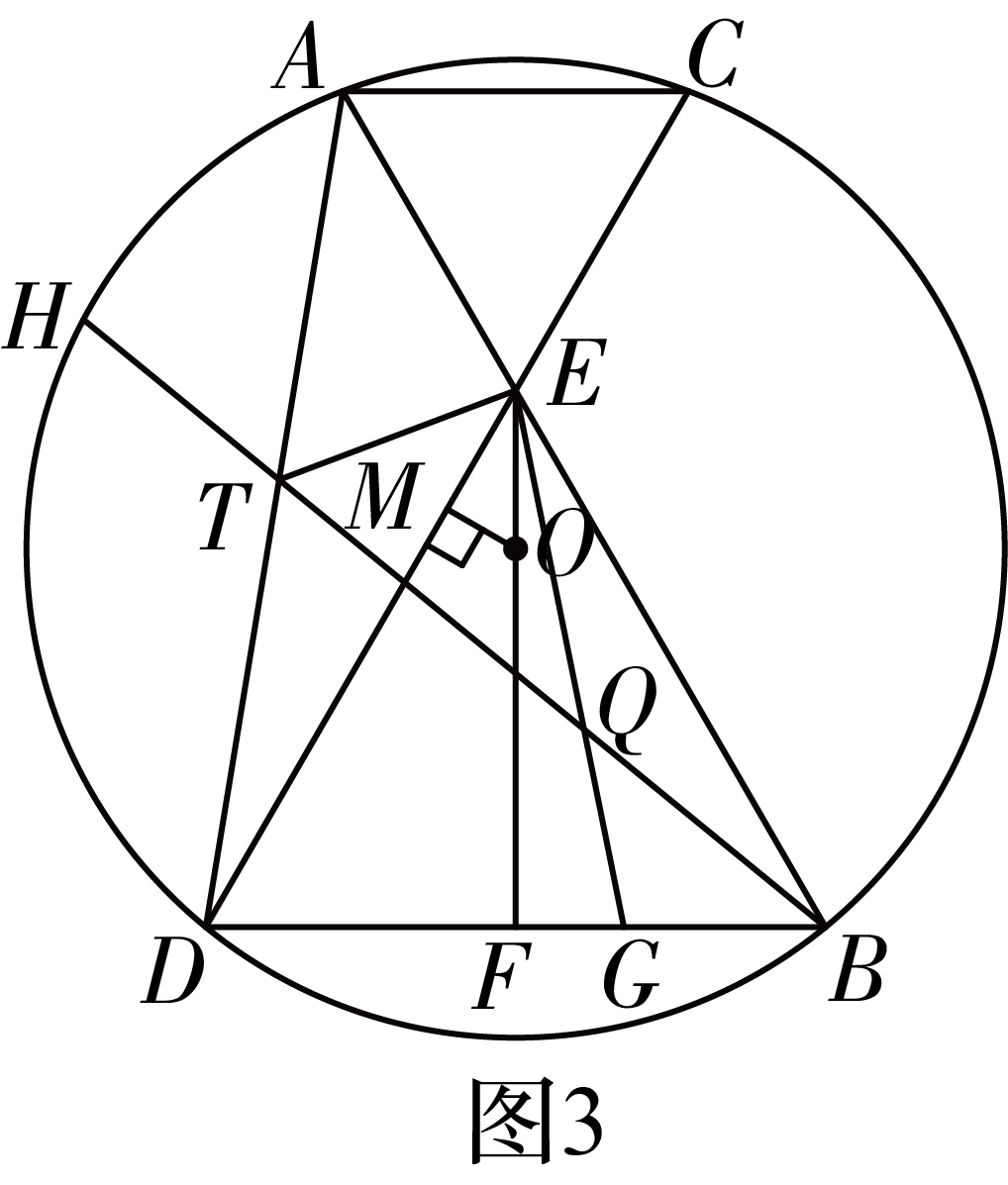 一道让人做到无语的数学题 咸鱼 发布于 2026-02-04 88 次阅读 在圆⊙O内两条弦AB和CD相交于点E,已知AE=CE,连接AC和BD。在圆\odot O内两条弦AB和CD相交于点E,已知AE=CE,连接AC和BD。 (1)如图1,求证:AC//BD。(1) 如图1,求证:AC//BD。 (2)如图2,连接EO并延长交BD于点F。求证:∠BEF=∠DEF。(2)如图2,连接EO并延长交BD于点F。求证:∠BEF = ∠DEF。 如图3,在(2)的条件下,作OM⊥CD于点M,连接AD,点G在BF上,连接EG,点H在弧AD上,连接BH交AD于点T,交EG于点Q,连接TE。已知DE−CM=32OE,A⌢H=A⌢C,∠DGE=2∠BAD,FG=2,AC=8。求TQ的长度。如图3,在(2)的条件下,作OM⊥CD于点M,连接AD,点G在BF上,连接EG,点H在弧AD上,连接BH交AD于点T,交EG于点Q,连接TE。已知DE - CM = \frac{\sqrt{3}}{2}OE, \overset\frown{AH}H=\overset\frown{AC}C, ∠DGE = 2∠BAD, FG = 2, AC = 8。求TQ的长度。 无奖竞猜第(3)题答案